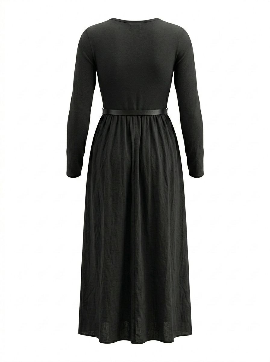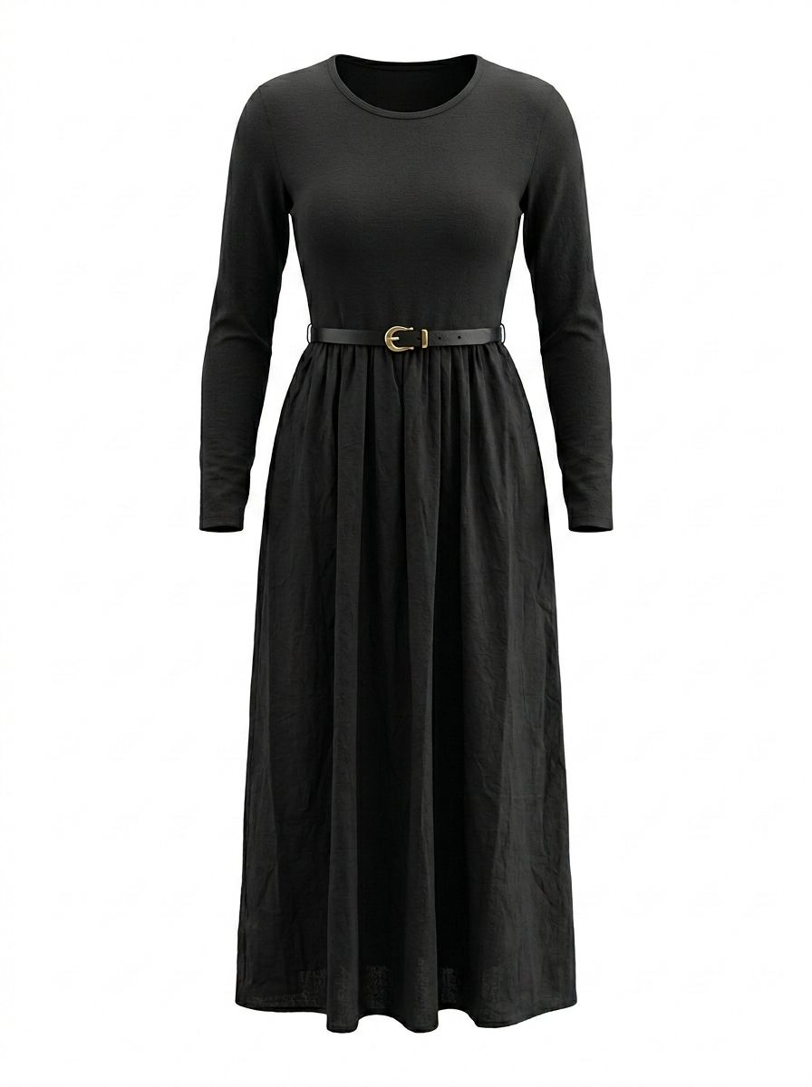 Baumwollkleid im zeitlosen, eleganten Design mit kombiniertem Jersey-Oberteil. Figurbetontes Oberteil aus weichem Jersey und locker fallender, fließender Baumwollrock für eine feminine Silhouette. Lange Ärmel und praktische seitliche Taschen. Angenehmes Material für hohen Tragekomfort.