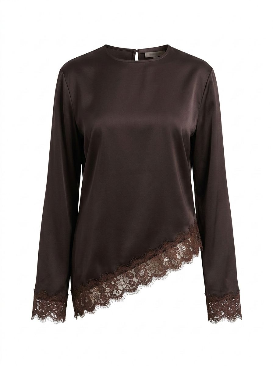 Satinbluse im eleganten Design in Bordeaux. Mit femininen Spitzenabschlüssen an Ärmeln und Saum für eine edle Note. Lange Ärmel und rückseitige Schnürung zur individuellen Anpassung der Passform. Angenehm weiches, leicht fließendes Material für hohen Tragekomfort.