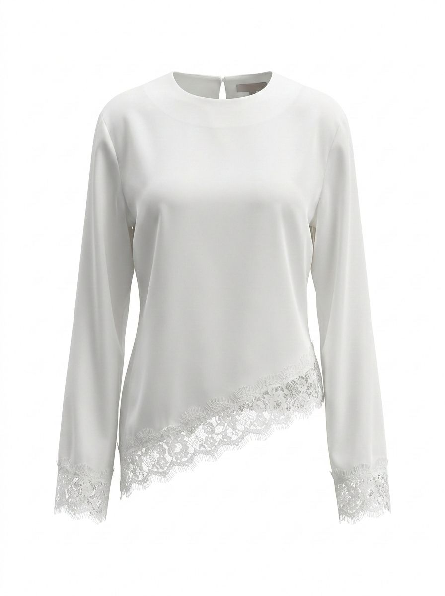Elegante weiße Satinbluse – Zeitloser Chic mit femininer Spitze